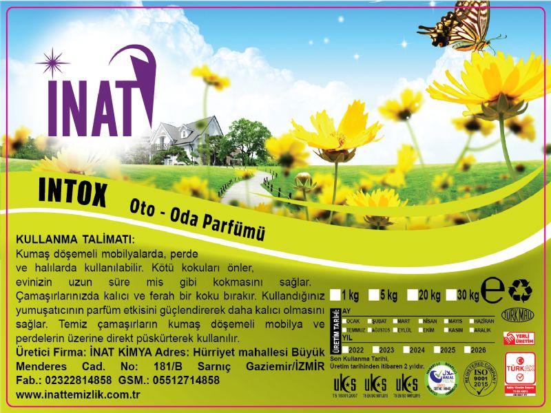 INSTRUCTION MANUAL: It can be used on fabric upholstered furniture, curtains and carpets. It prevents bad odors and makes your house smell good for a long time. It leaves a lasting and fresh scent on your laundry. It strengthens the perfume effect of the softener you use, making it more permanent. It is used by spraying clean clothes directly on upholstered furniture and curtains. Manufacturer: INAT KIMYA Address: Hürriyet Mahallesi Büyük Menderes Cad. No: 181/B Sarnıç Gaziemir/İZMİR Factory: 02322814858 GSM.: 05512714858 www.inettemizlik.com.tr