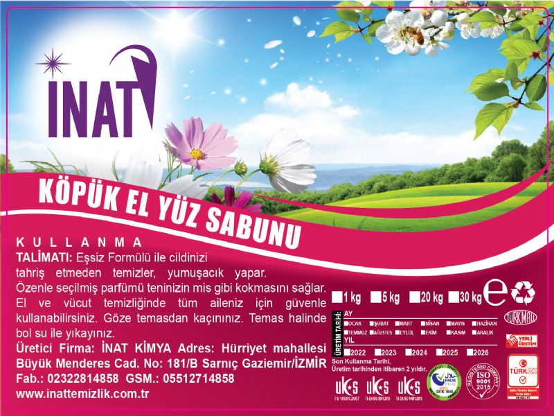 INSTRUCTIONS FOR USE: With its unique formula, it cleans your skin without irritating and makes it soft. Its carefully selected perfume makes your skin smell like sweet. You can safely use it for your whole family for hand and body cleaning. Avoid contact with eyes. In case of contact, wash with plenty of water. Manufacturer: INAT KIMYA Address: Hürriyet Mahallesi Büyük Menderes Cad. No: 181/B Cistern Gaziemir/IZMIR Factory: 02322814858 GSM.: 05512714858 www.inettemizlik.com.tr