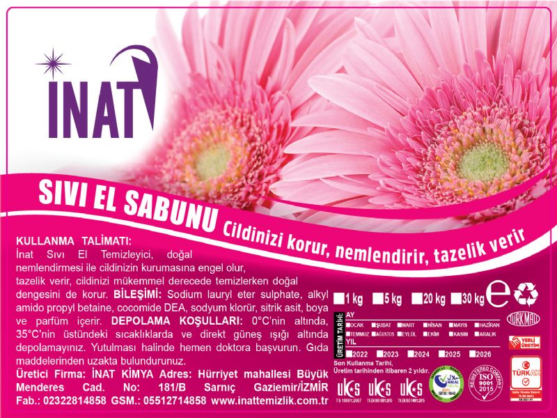 INSTRUCTIONS FOR USE: With its unique formula, it cleans your skin without irritating and makes it soft. Its carefully selected perfume makes your skin smell like sweet. You can safely use it for your whole family for hand and body cleaning. Avoid contact with eyes. In case of contact, wash with plenty of water. Manufacturer: INAT KIMYA Address: Hürriyet Mahallesi Büyük Menderes Cad. No: 181/B Sarnıç Gaziemir/İZMİR Factory: 02322814858 GSM.: 05512714858 www.inettemizlik.com.tr